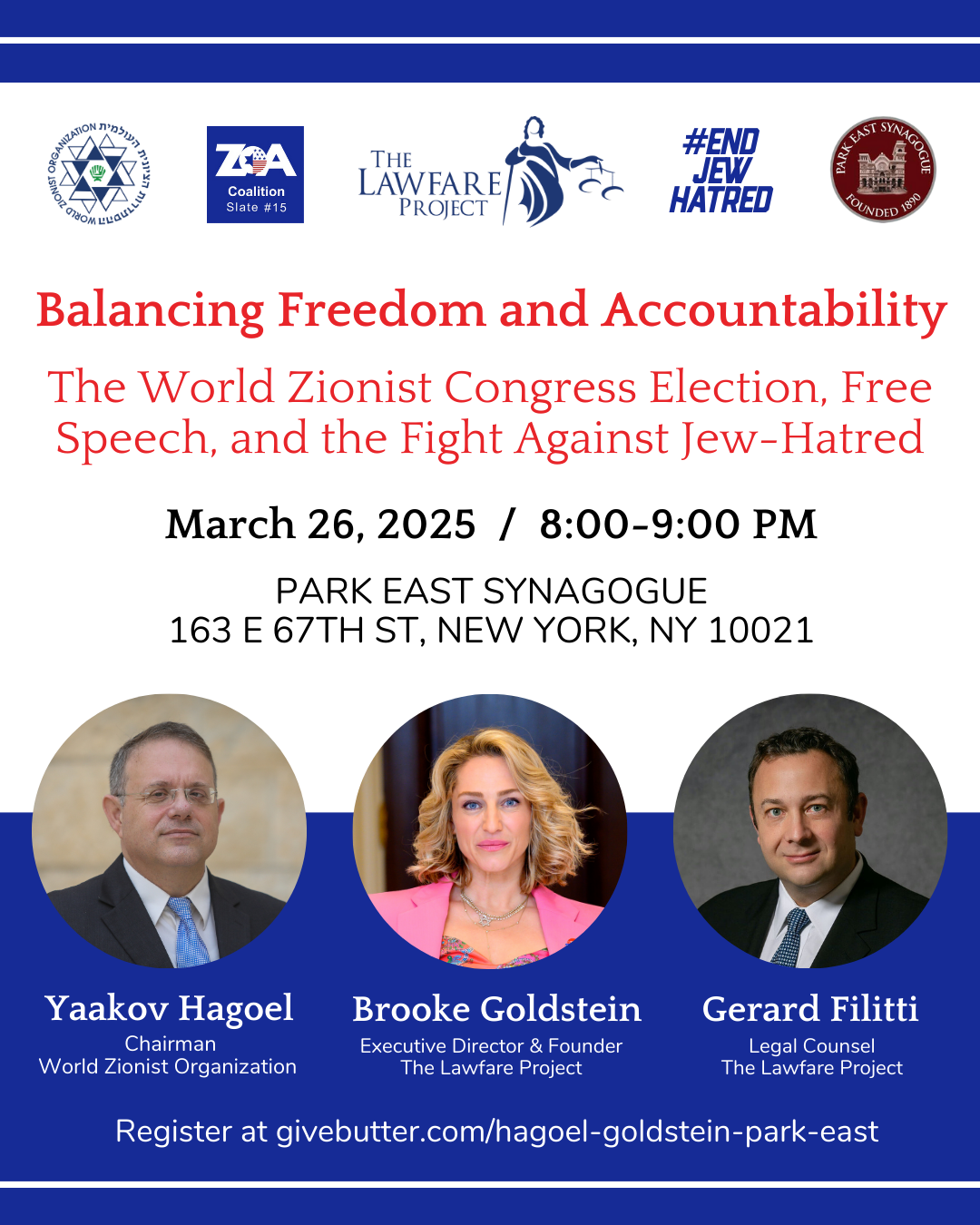 On March 18, Brooke Goldstein, founder of the #EndJewHatred movement, spoke to nearly 500 members of the metro-Detroit Jewish community at Temple Israel. She was on a a panel with University of Michigan Regent Jordan Acker. The two discussed ways to fight Jew-hatred at the University of Michigan. Watch Brooke here