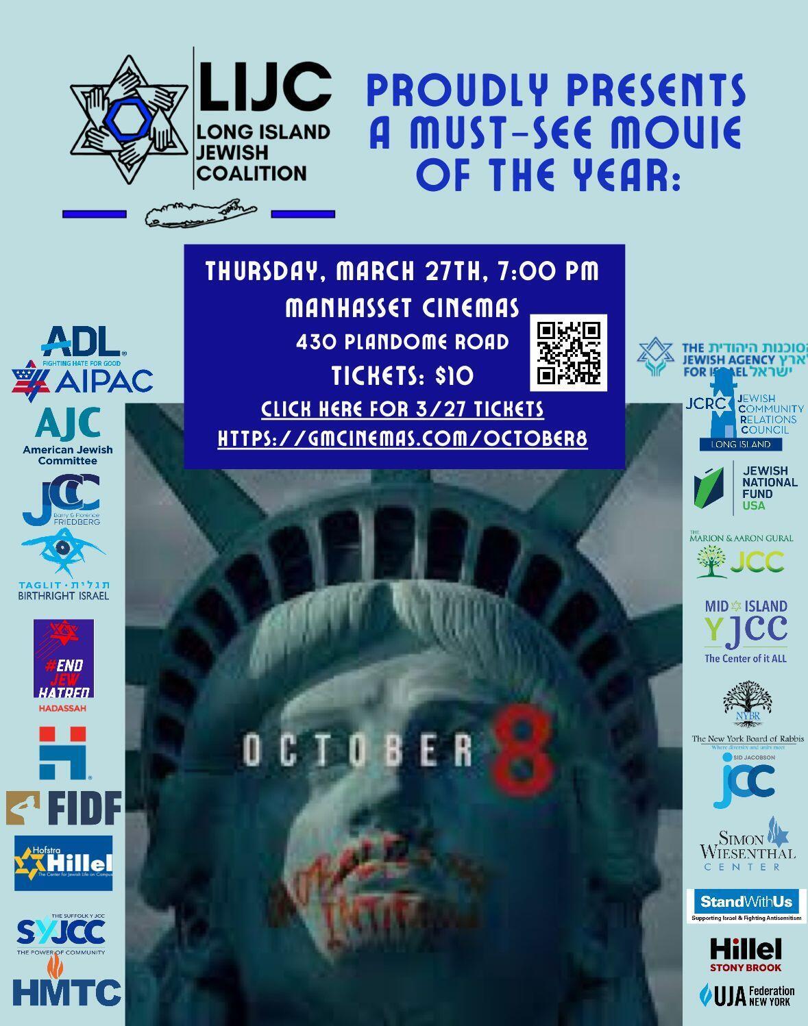 On March 17, over 400 community members showed up for a screening of the October 8 documentary brought to Great Neck by the Gold Coast Film Festival and #EndJewHatred. A Q&A session with Michelle Ahdoot following the screening focused on what can we do from here as activism and empowerment to embrace Jewish civil rights were the key themes of the powerful evening.