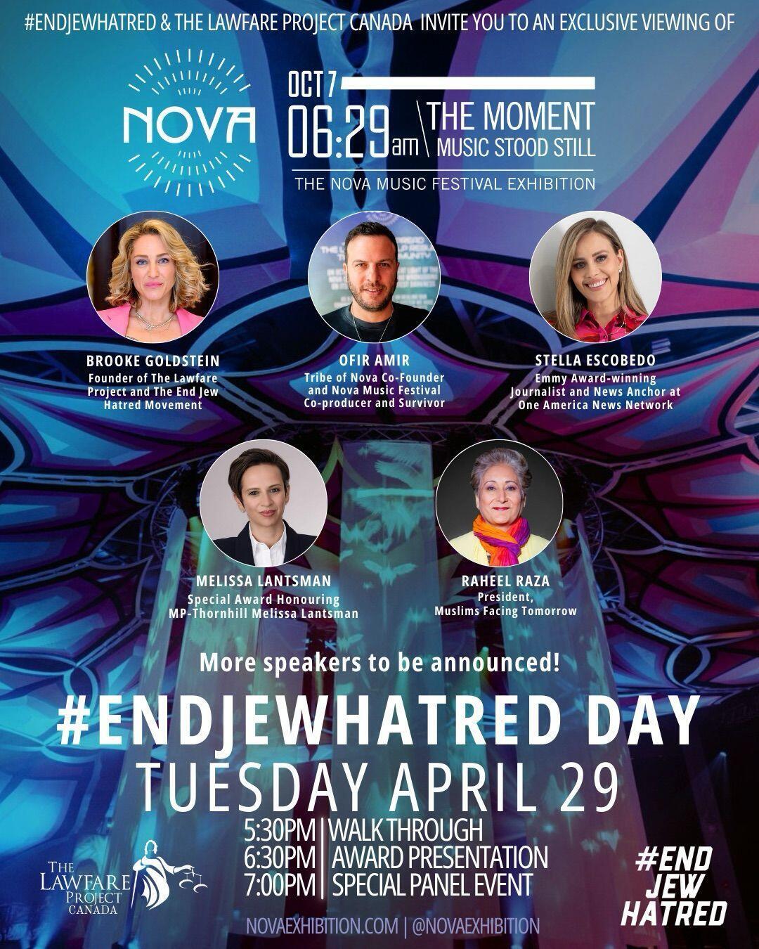 The grassroots #EndJewHatred civil-rights movement announced that it will commemorate internationally recognized #EndJewHatred Day on Tuesday, April 29, at the Nova Exhibition in Toronto.