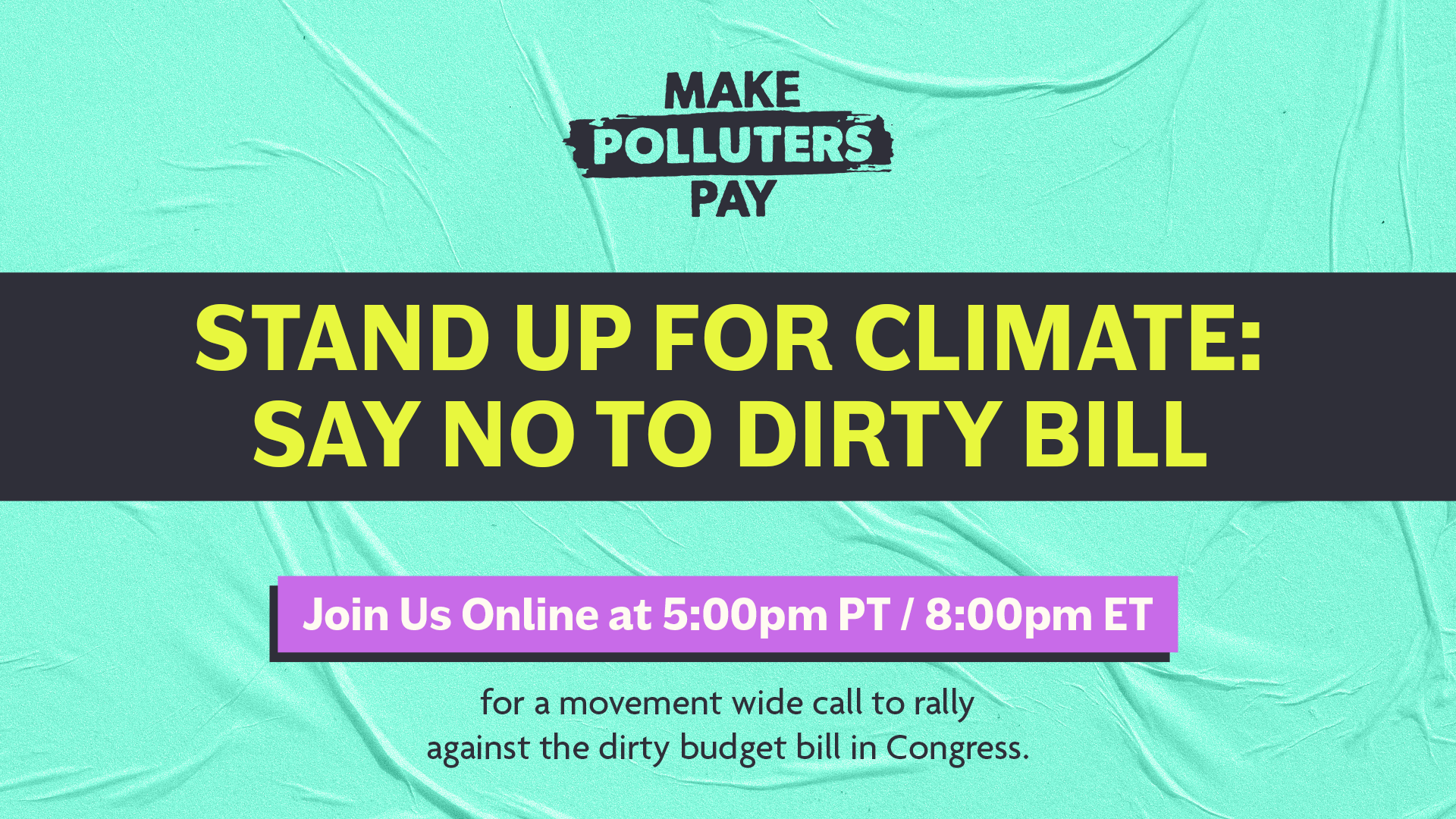 We cannot afford to let this dirty budget pass. Our future depends on the choices we make today. If you can come to our call next Monday, we'd love to see you there!