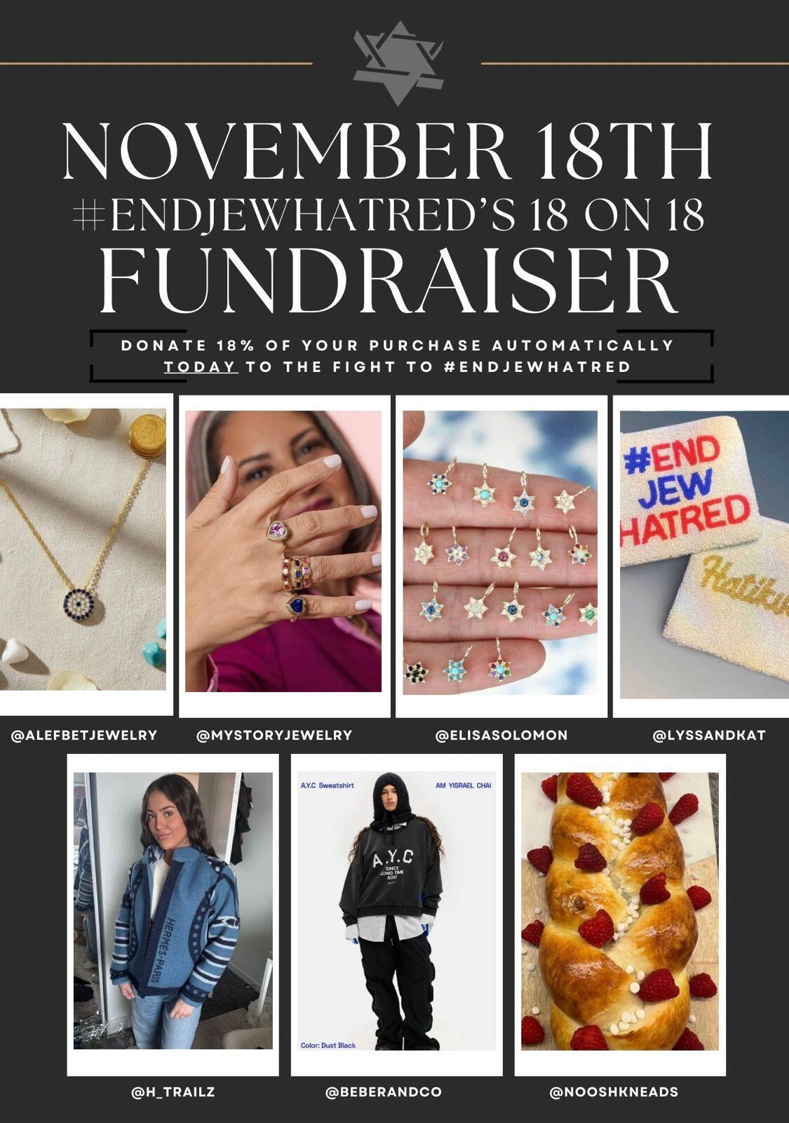 For today only — the 18th — every one of our participating Jewish-owned brands is donating a minimum of 18% of ALL sales to The Lawfare Project and our movement to #EndJewHatred.