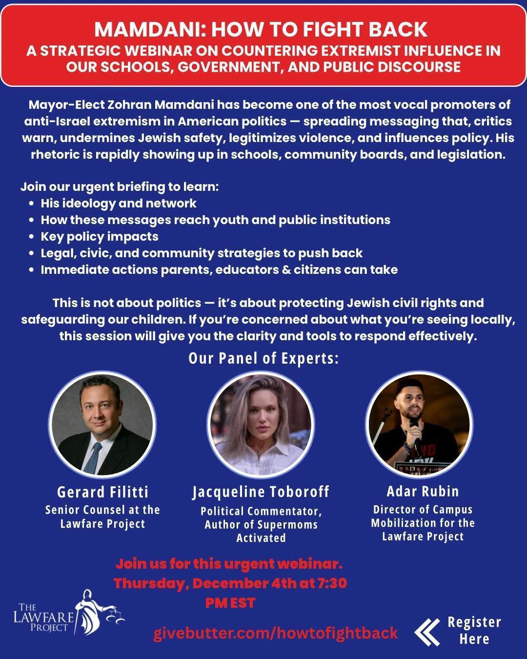 Early in the month, our community showed up in force for a post-election conversation led by Adar Rubin, our Director of Mobilization, and Gerard Filitti, Senior Counsel at The Lawfare Project. Together, they unpacked what the evolving political landscape means for Jewish civil rights and outlined strategies for effective community mobilization in the months ahead.