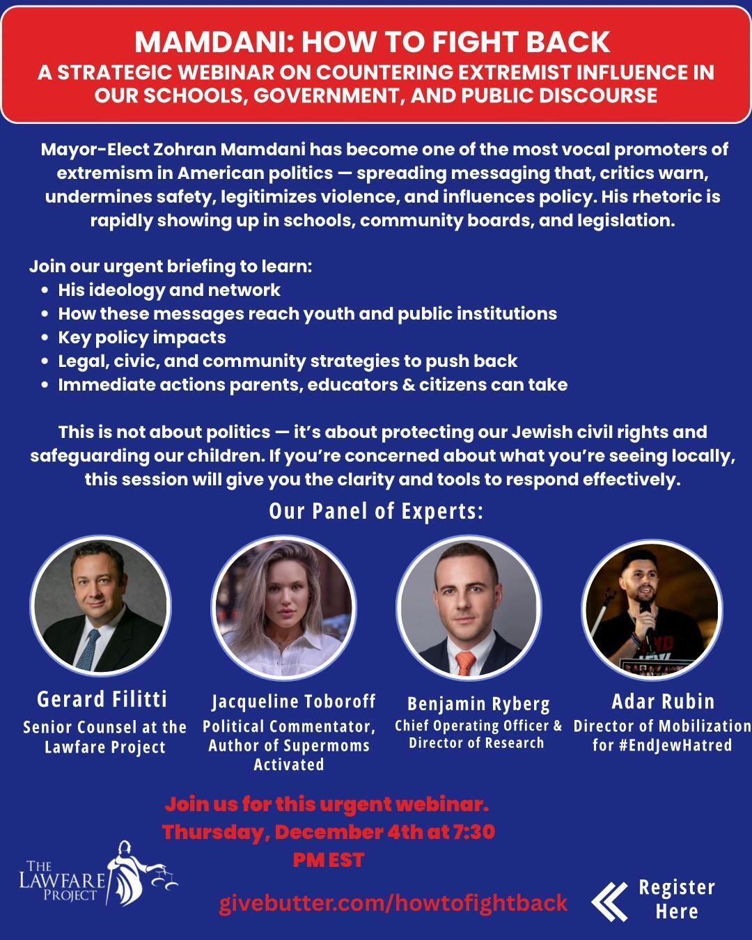 Tonight's webinar will break down exactly who Mamdani is, how his messaging gains traction, why it's dangerous for Jewish communities, and most importantly — what you can do to fight back.