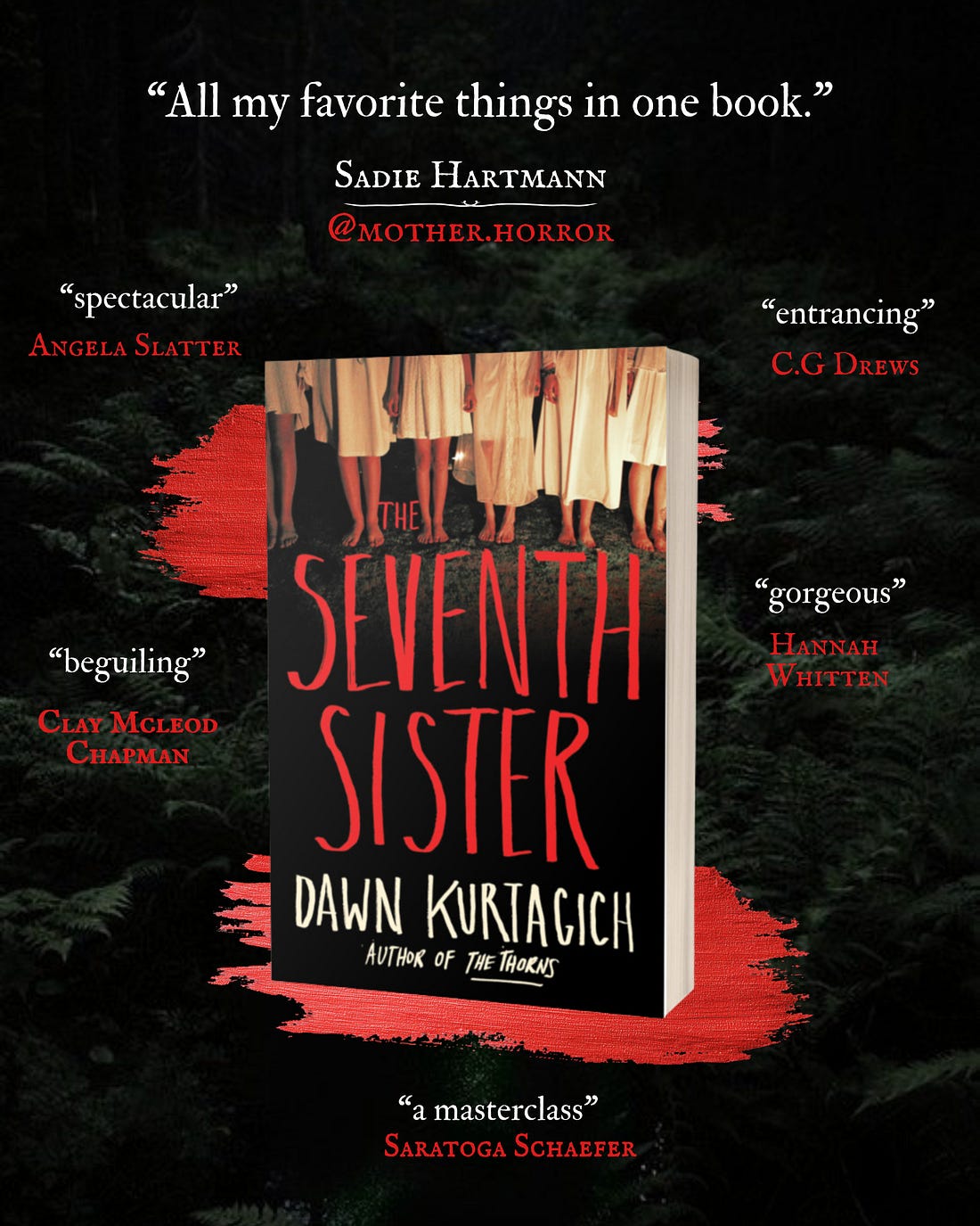The Seventh Sister is OFFICIALLY OUT NOW!!! I could not be more excited about this mushroom-soaked, forest rot, botanical folk horror. I’m loving all of the hype that TSS is already receiving, so thank you so very much. If you need me I’ll be prancing around the woods in my forest God mask, thanking Daudir for this little rotten collection of papers. April 7th. My 7th novel. The Seventh Sister. I didn’t plan this, since I get no say in when my books are released, but honestly? Sometimes symmetry is just perfect and the forest provides. To celebrate the launch, I went to fancy afternoon tea in a manor house not dissimilar to the one in the novel (this one not peeling and riddled with mushrooms and bone effigies). And, of course, I dressed in a manner suitable for the occasion. This is a story about a middle sister, the third of seven. It’s about the rose-tinted glasses of childhood fable, and the clearer, colder eyes of adulthood in looking back. It’s about a forgotten forest god, and the barefoot children who worshipped him through the moss. It’s about love and it’s about ritual and, above all, it’s about devotion. 🌲🐇 All hail Daudir! 🐇🌲 🍄 If you've already read it, a review on Goodreads or Amazon, etc means the world today. 🍄 “An entrancing folk horror of sisterhood with a dark side.” ~ CG Drews, #1 NYT Bestselling author of Hazelthorn and Don’t Let The Forest In “I stayed up way too late to finish this gorgeous, grotesque story of sisterhood and survival.” ~ Hannah Whitten, New York Times and Sunday Times bestselling author of For the Wolf and The Foxglove King “The Seventh Sister isn’t just a beautiful book, it’s a bible.” ~ Clay McLeod Chapman, author of Wake Up and Open Your Eyes “The Seventh Sister is a masterclass on folk horror.” ~ Saratoga Schaefer, USA Today Bestselling author of Serial Killer Support Group and Trad Wife “My favorite Dawn Kurtagich book yet!” ~ Sadie Hartmann, Bram Stoker Award winning author of 101 Horror Books to Read Before You’re Murdered 🌿 You can find The Seventh Sister at: Barnes & Noble, Target, Amazon, Audible, Books-A-Million, Blackwells and more. I’ve listed the content warnings here, but there are mild spoilers there, so click at your own risk. I hope you enjoy ♡♥︎♡ I’ll be hanging out over on instagram today for a bit, so maybe I’ll see you there? DawnYou're currently a free subscriber to Dawn’s Substack. For the full experience, upgrade your subscription.